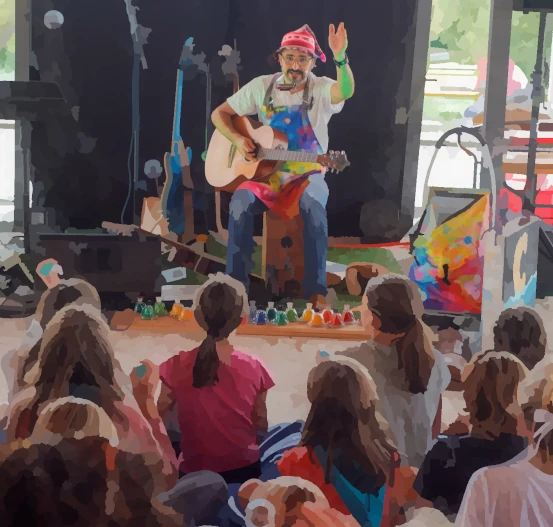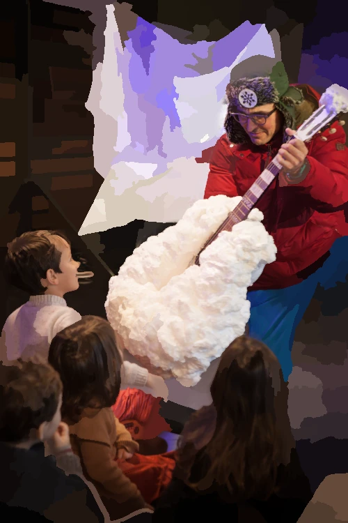 Les enfants pourront manipuler au cours du spectacle : guitare (Guy Tard), ukulélé, et les percussions (32 tambours TROMMUS, 200 œufs maracas)
